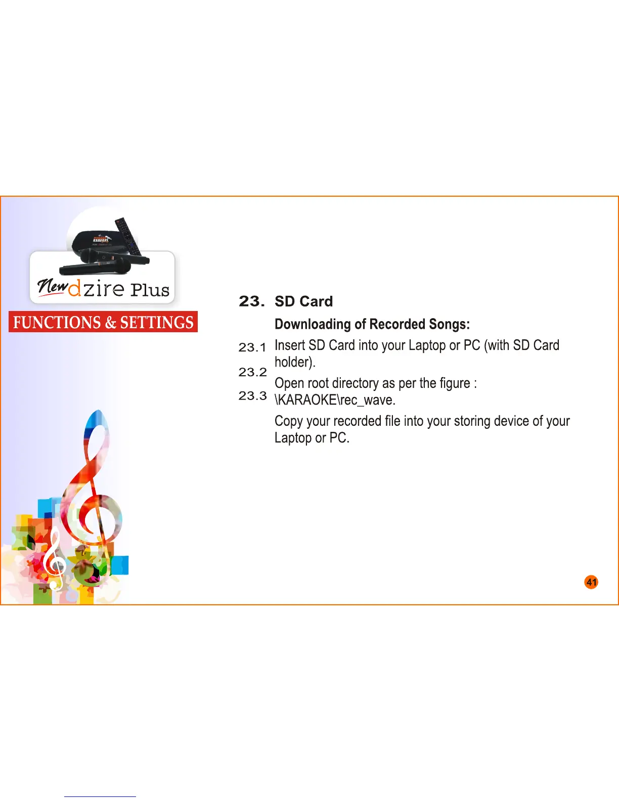 Persang dzire plus - SD Card; Downloading of Recorded Songs