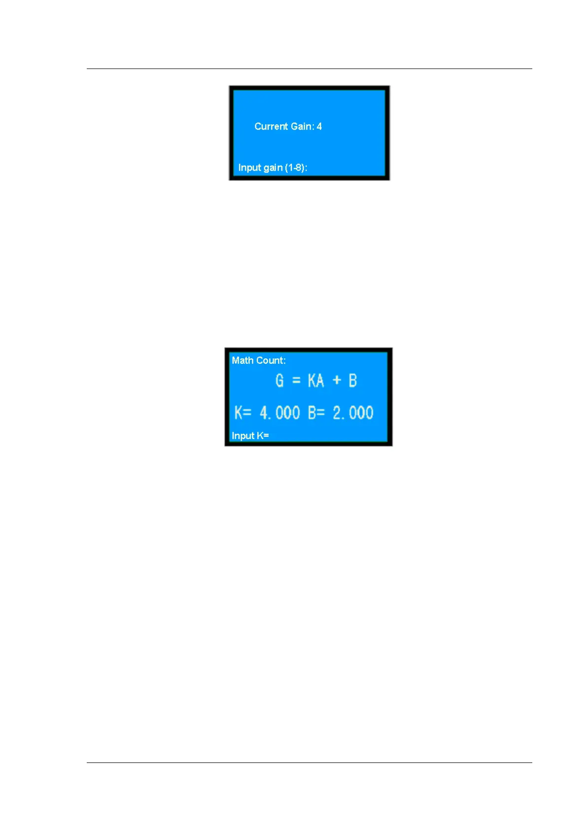 At the bottom of this page, enter the gain value by pressing the numeric keys (1~8). The range is 1~8.