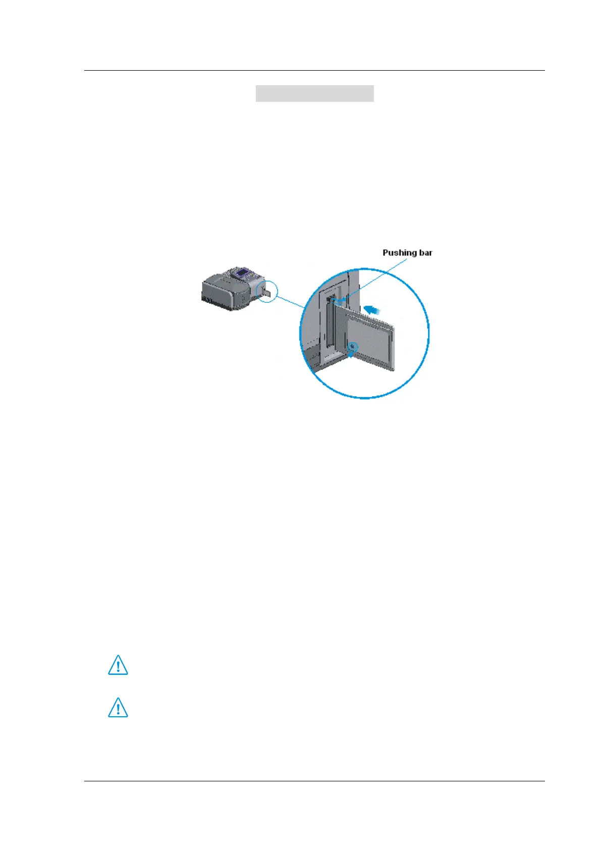 Please turn off the instrument before taking out the card. Press the pushing bar above the slot to take