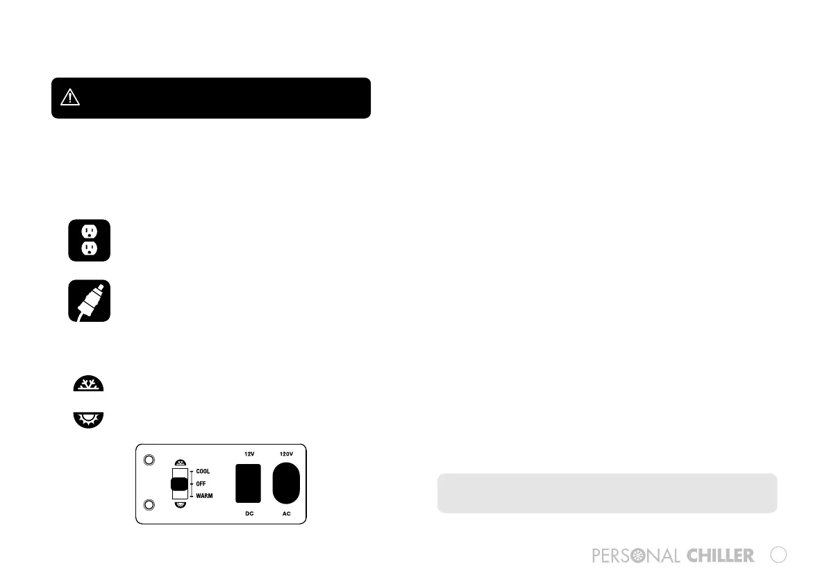 FOR WARMING: Flip the power switch from OFF to WARM setting.