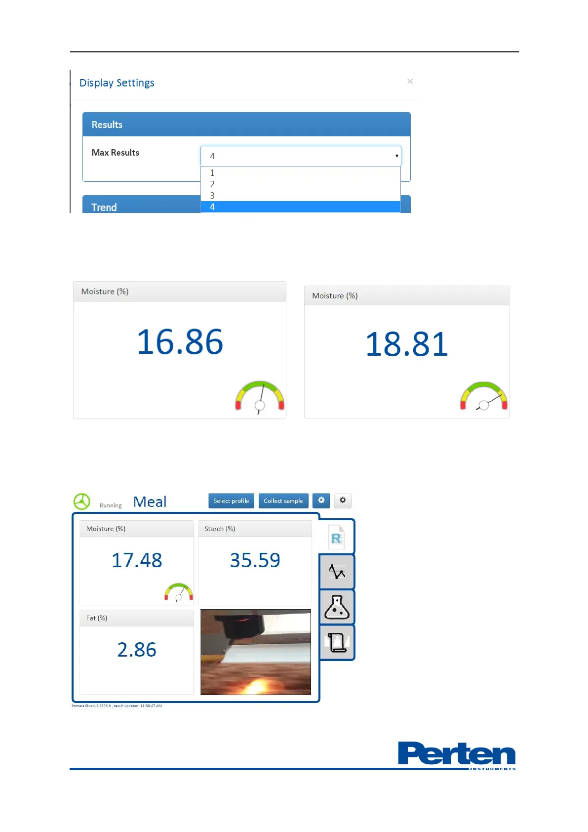 combination with displayed values. The web camera can be pointed at the conveyor belt