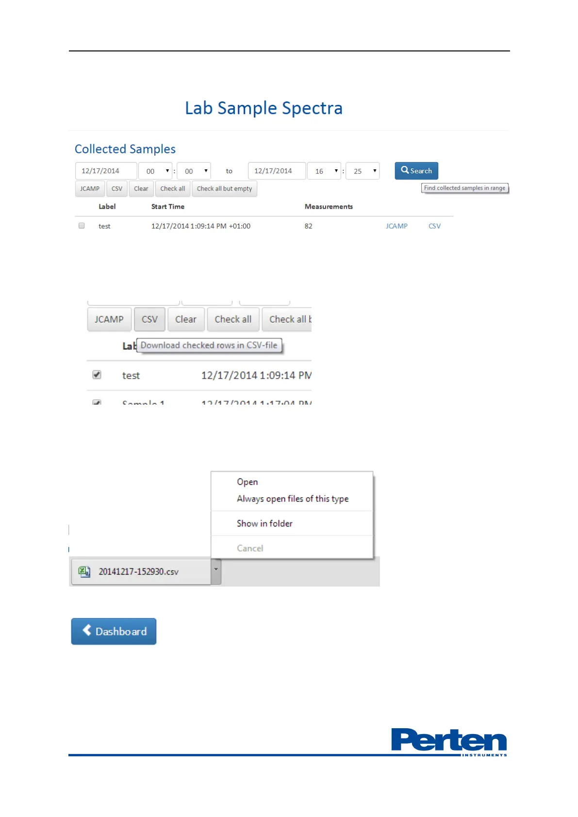 Export to JCAMP or CSV file. The CSV file contains all sample information and is the preferred