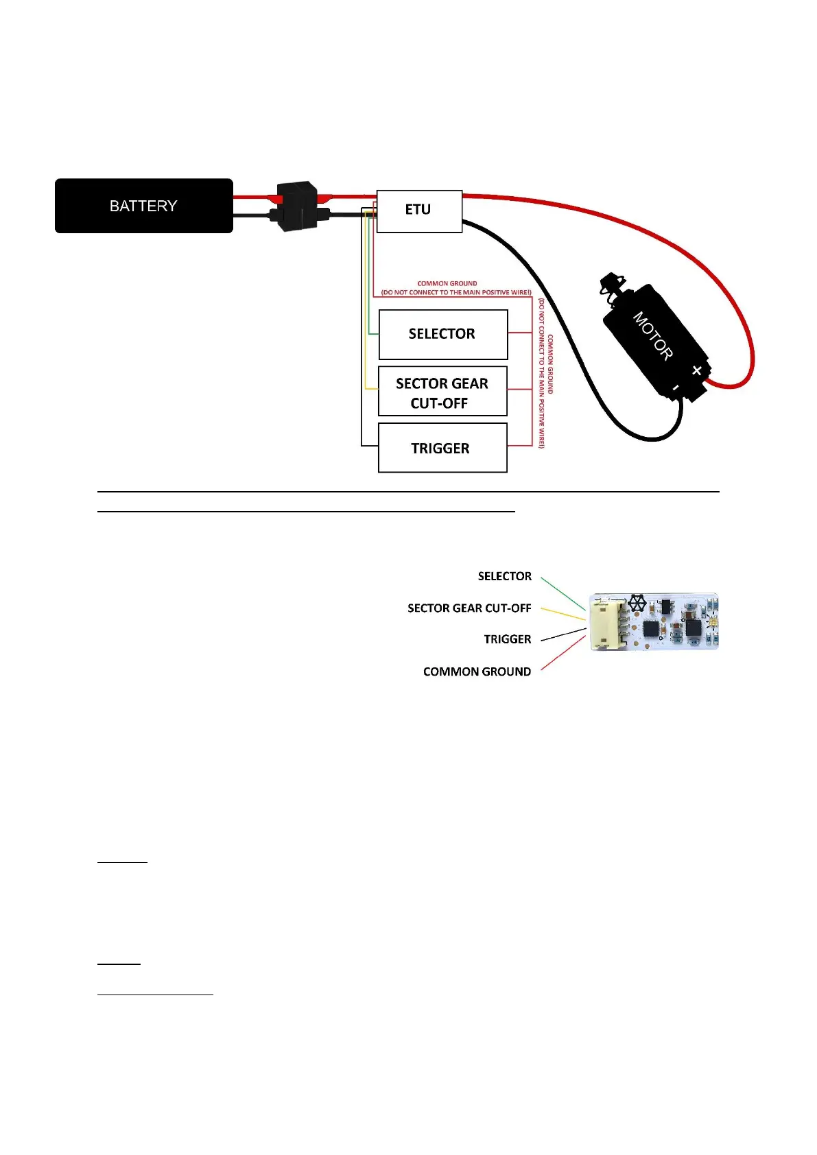 Do not allow the motor wires to get into (uninsulated) contact with any of the signal wires. This