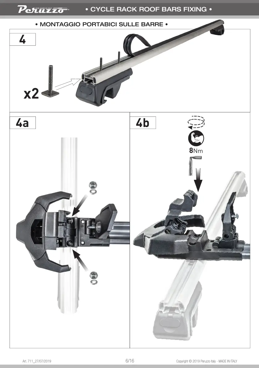 Peruzzo Pure Instinct - Mounting Bike Carrier on Roof Bars; Securing Carrier to Roof Bars