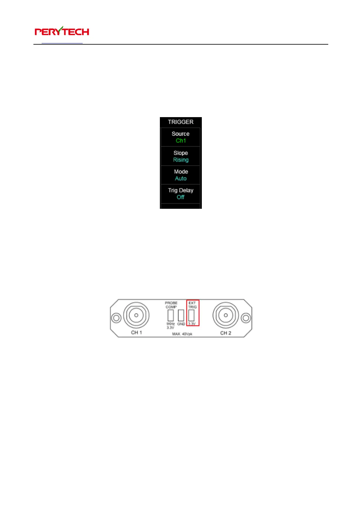 include Ch1, Ch2, and the Ext (external trigger). The input point for the external