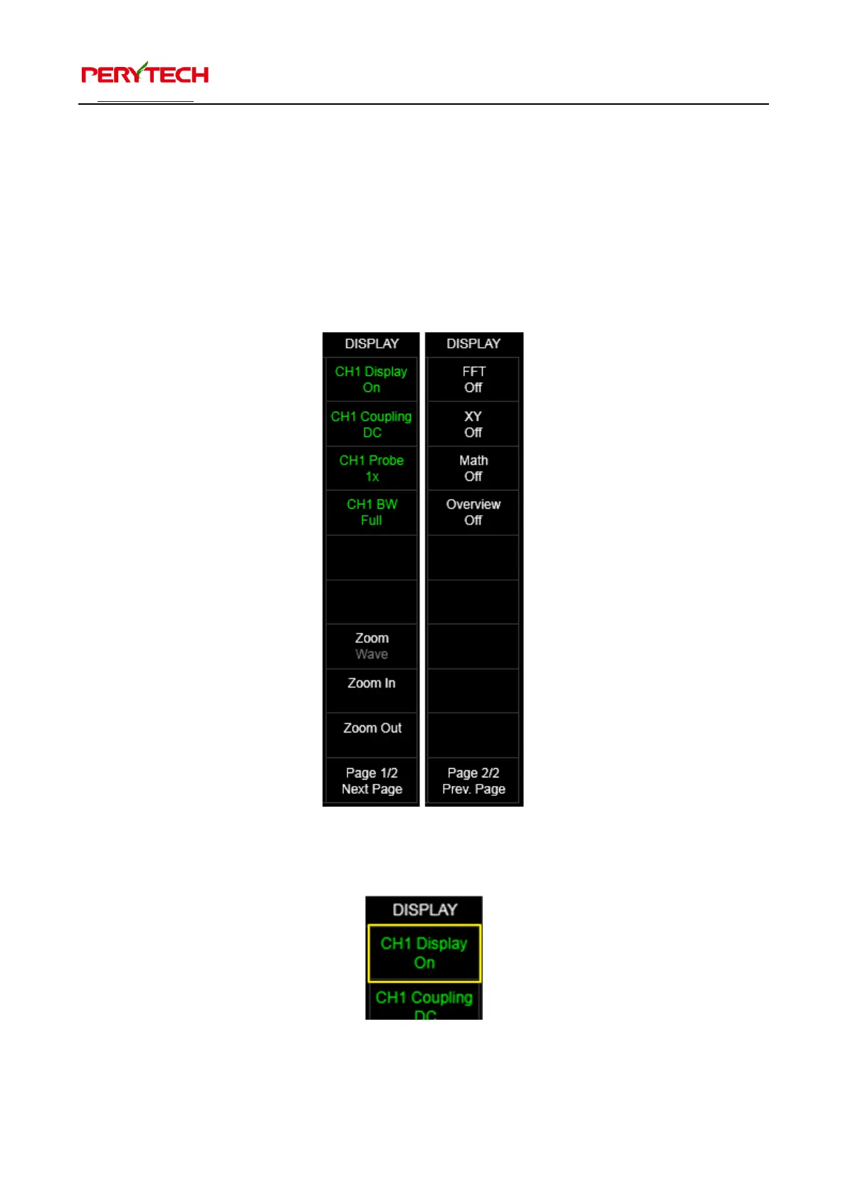 CHx Display menu can be used to turn on and off the wave pattern display. The