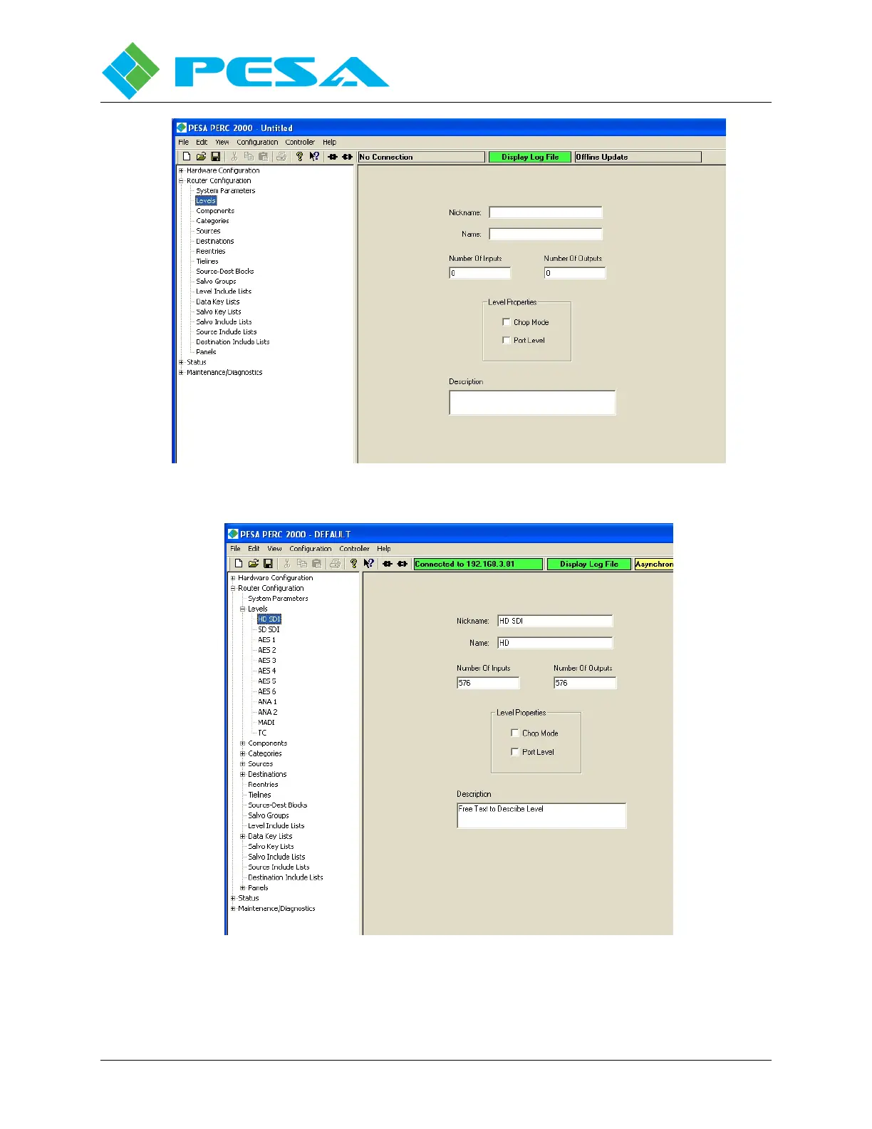 PESA Cheetah PERC2000 - Figure 8-17 Levels Configuration; Figure 8-18 Levels Configuration