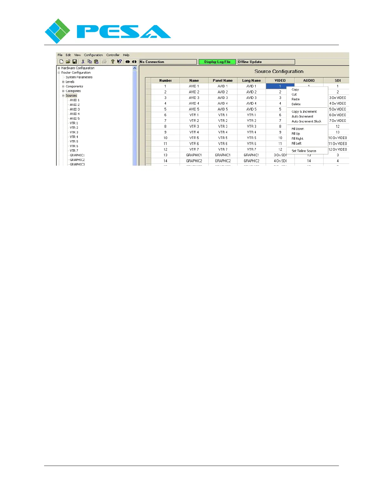 source on the SDI level. On the source spreadsheet the text entry “6 On VIDEO” is