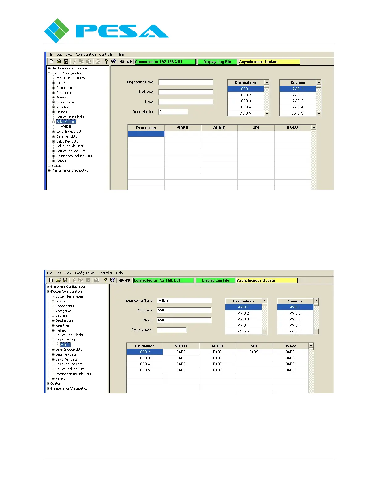 destinations. Salvo groups may be assigned by group name to a single control panel key.