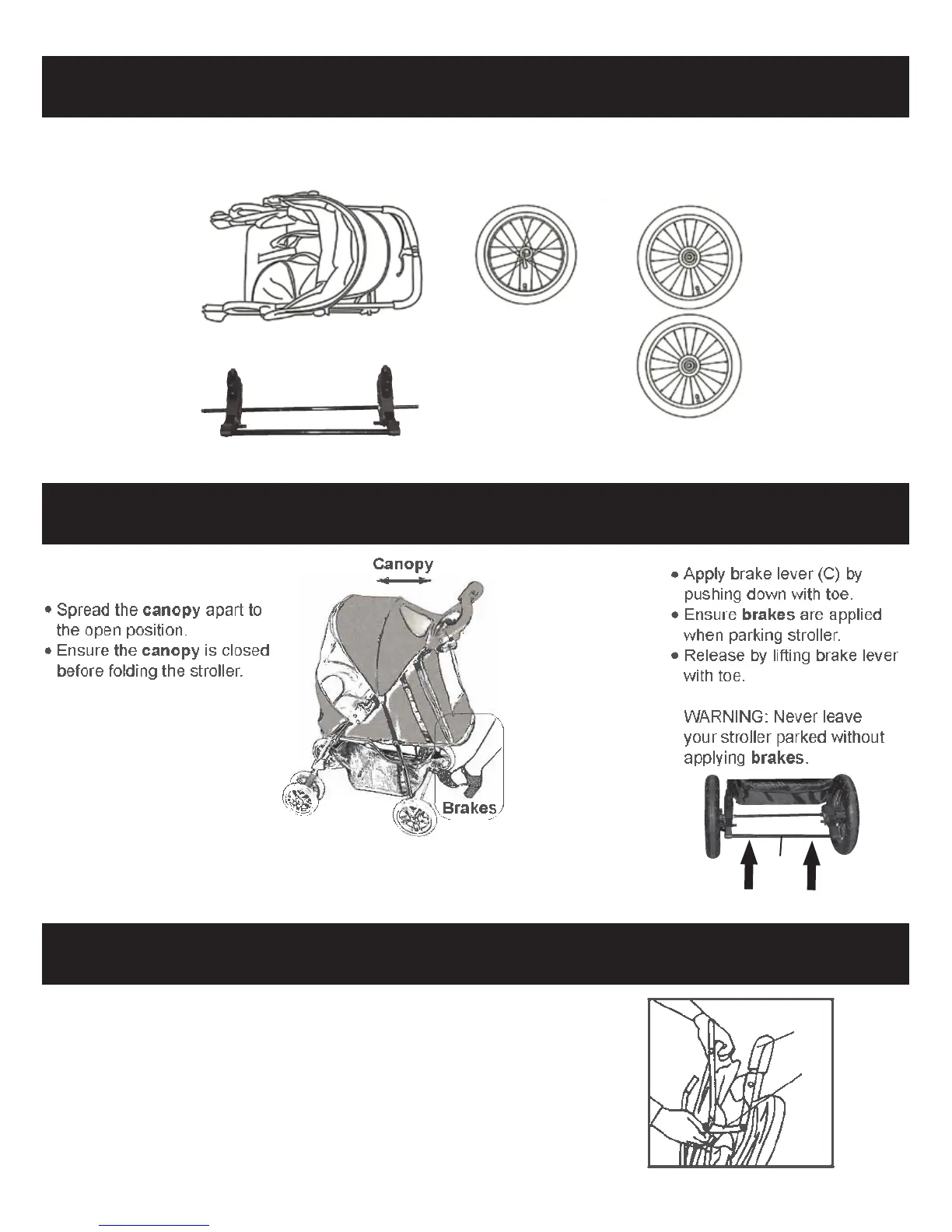 Spread handle (A) and seat apart until the frame clicks and locks on both