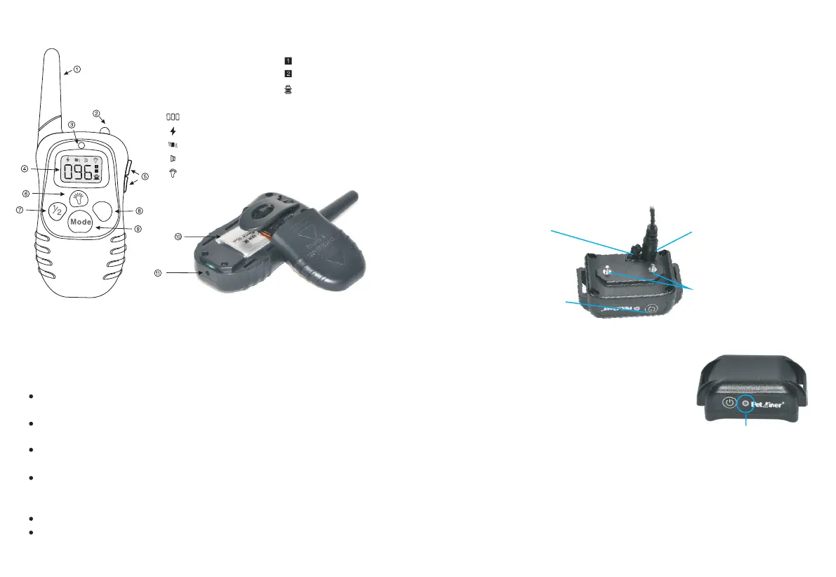 1. Antenna: Transmits the signal from the Transmitter to the Receiver Collar.
