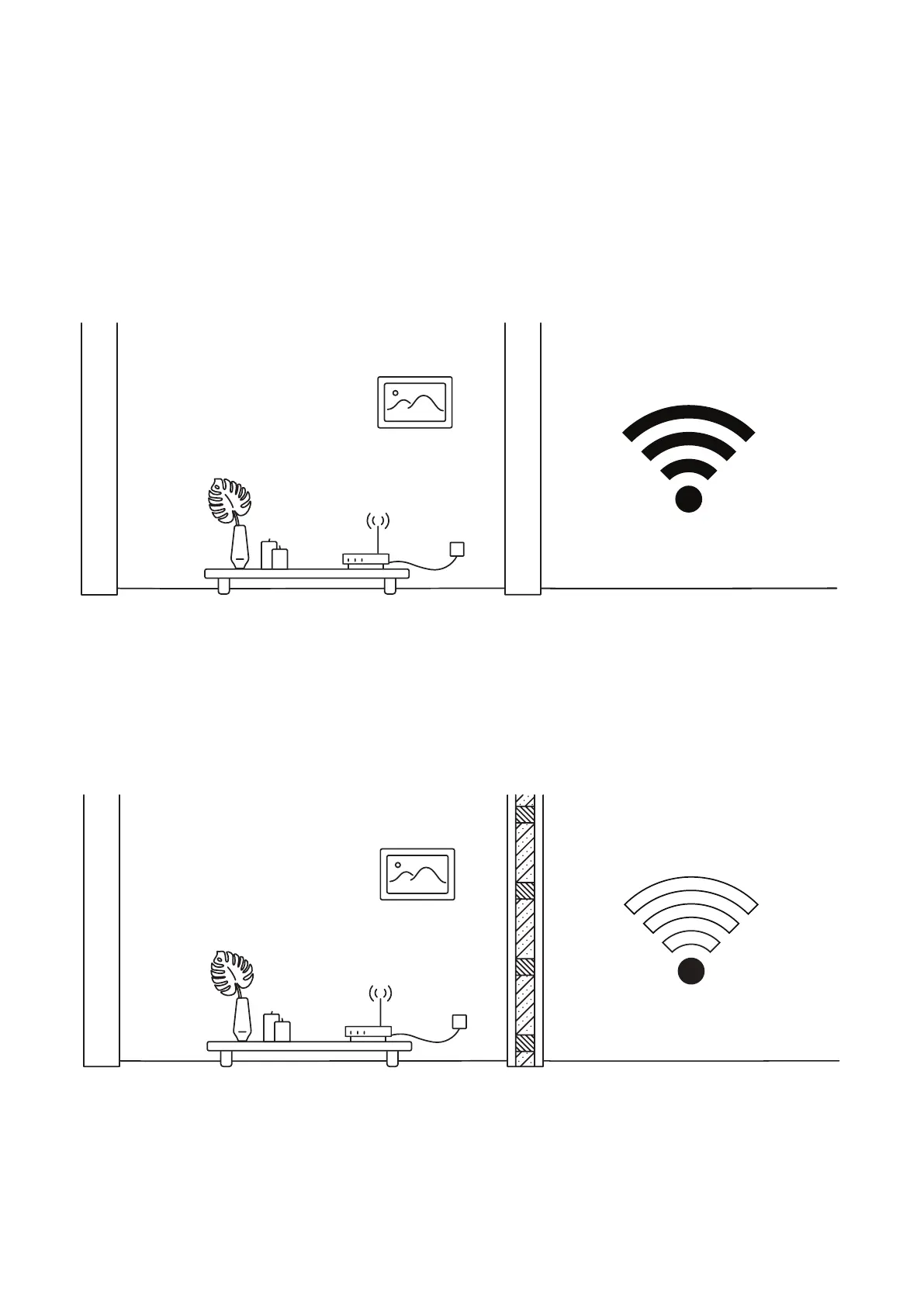 Example 2 shows a bearing wall between two rooms which causes poor Wi-Fi signal