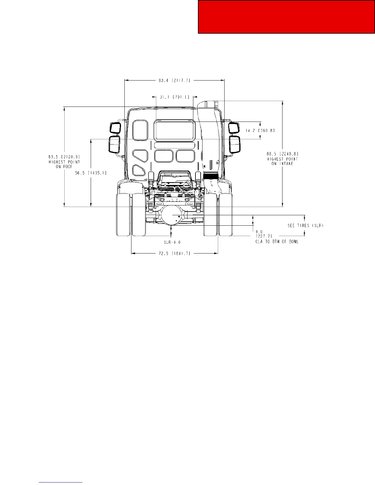 Figure 3-3.4 Model 220 Laden Rear View: Width and Ground Clearance Measurements: