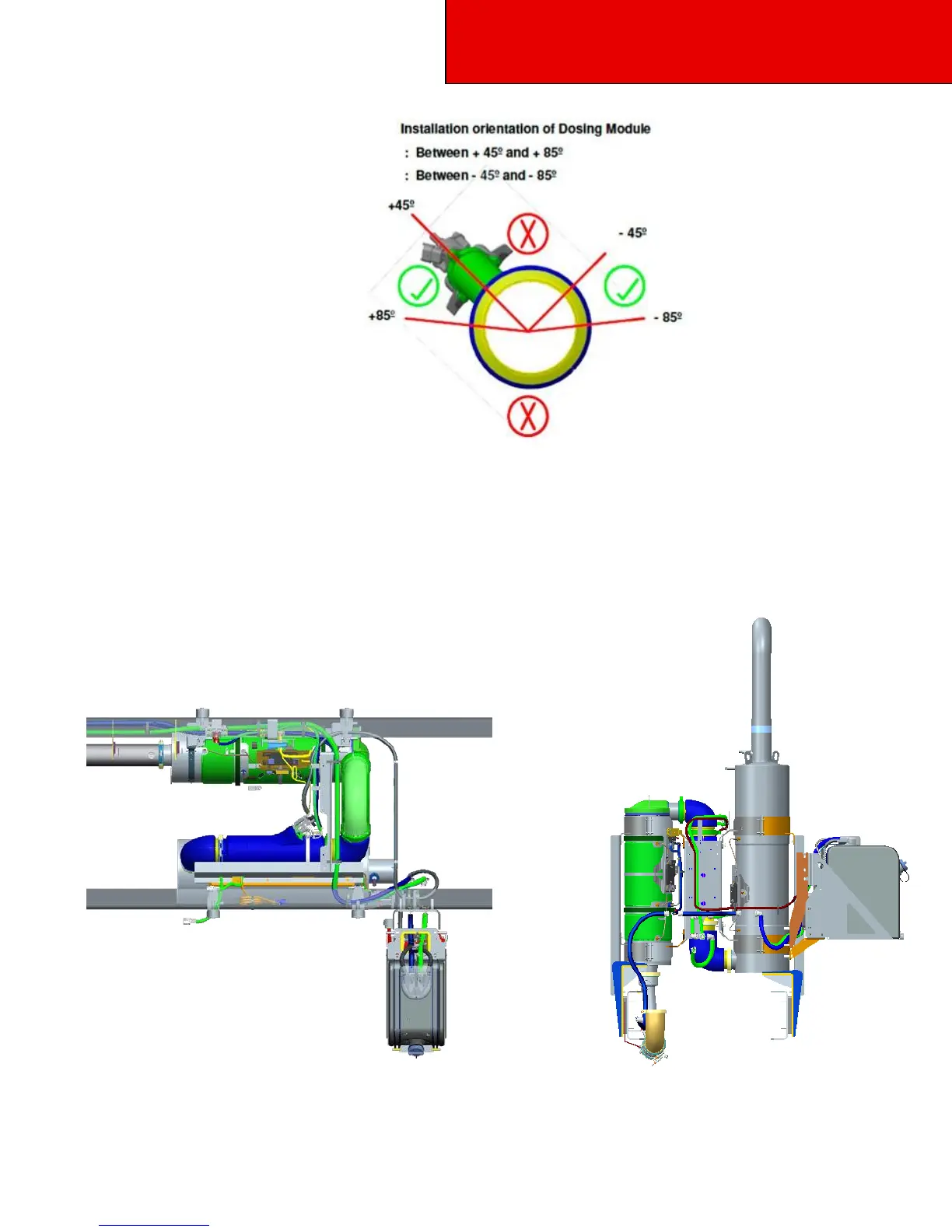 It is important for the function of the dosing module to ensure that the dosing module is not routed downstream of DEF
