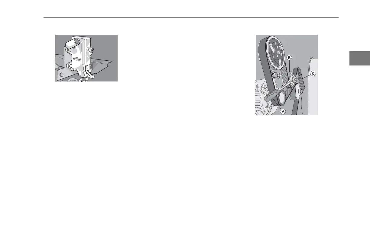 3. Slacken the poly-V belt (C) (see arrow