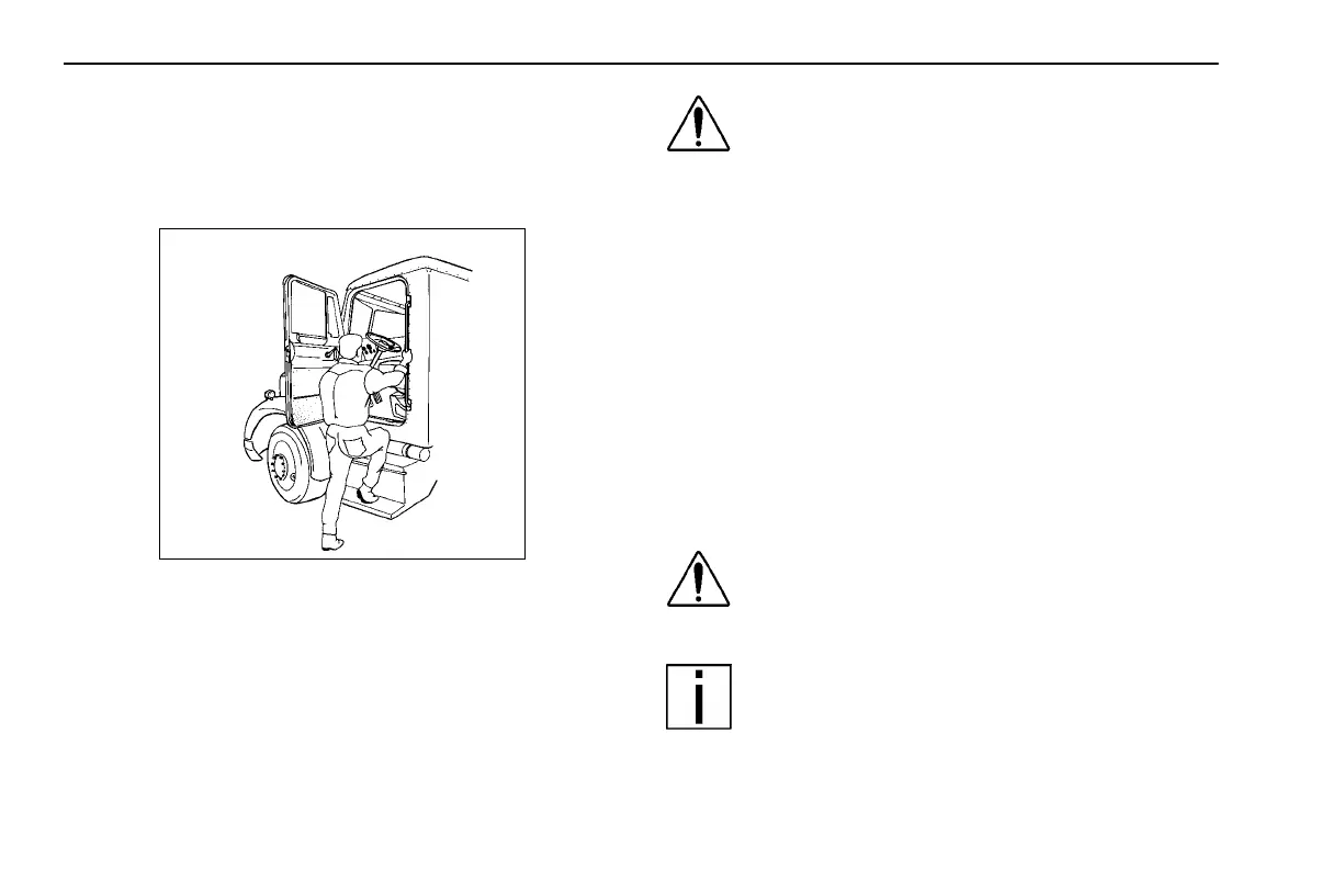 do not climb onto the area behind the cab.
