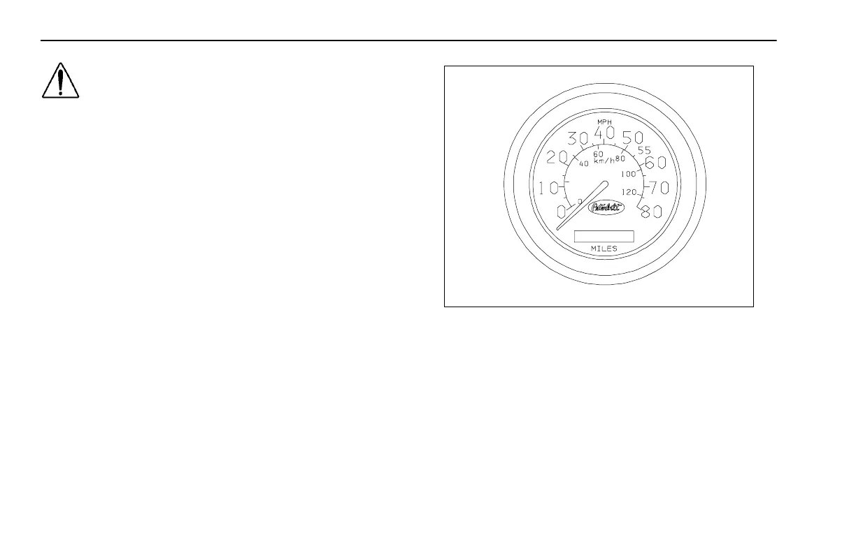 The speedometer indicates the vehicle speed in miles per