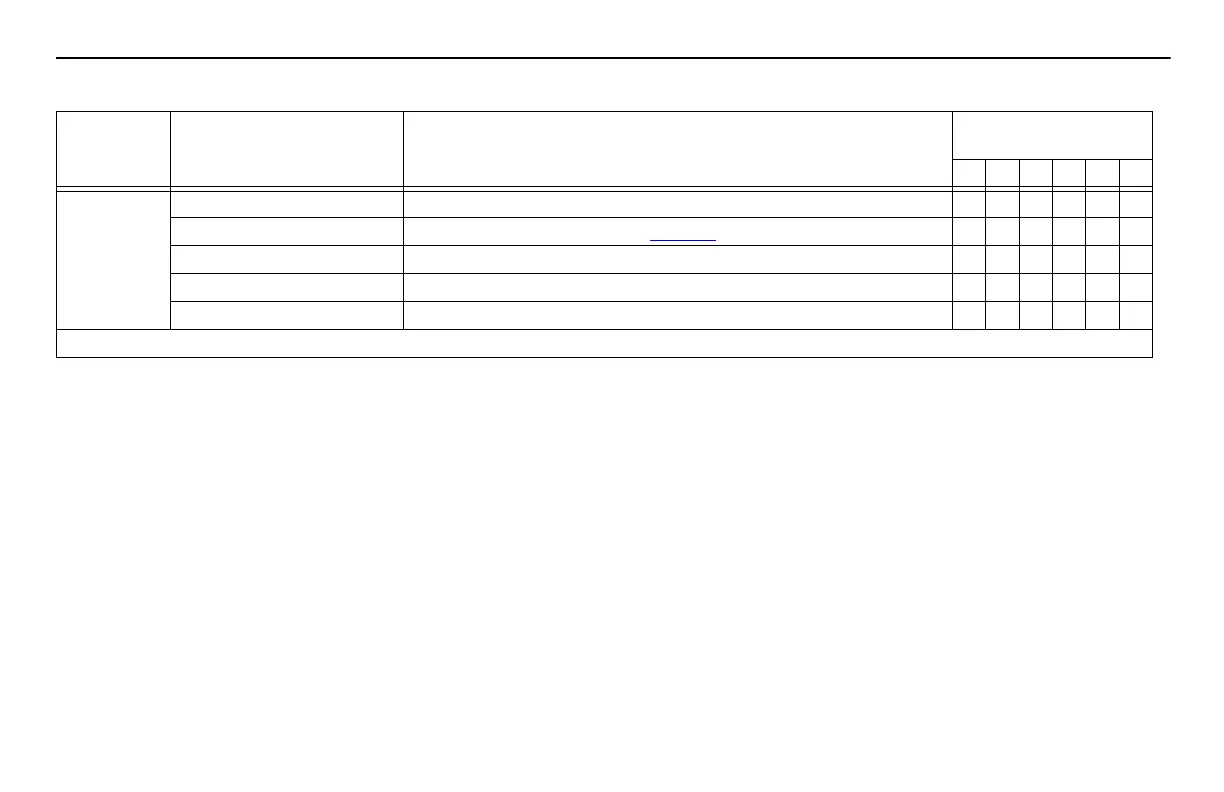 Clutch Clutch pedal shaft Check for excessive looseness and lubricate (NLGI #2 grease). X