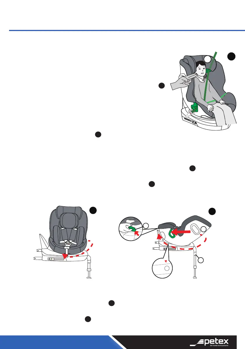 gerichtete Position, in der der Kindersitz automatisch einrastet.