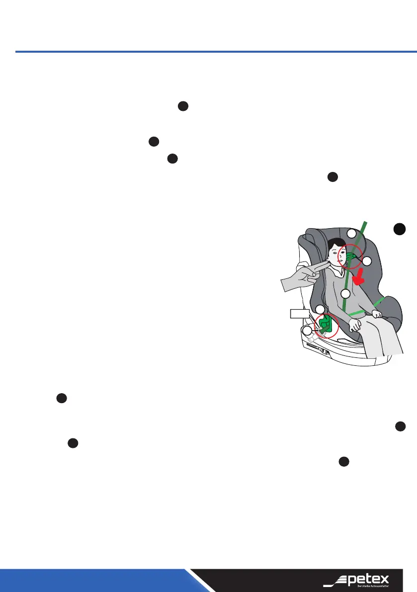 lehne und durch den grünen Gurtführungsspalt des Kindersitzes.