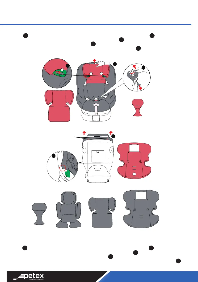 9. Önen Sie die Druckknöpfe auf beiden Seiten des Sitzes , önen Sie den Klettverschluss hinter dem