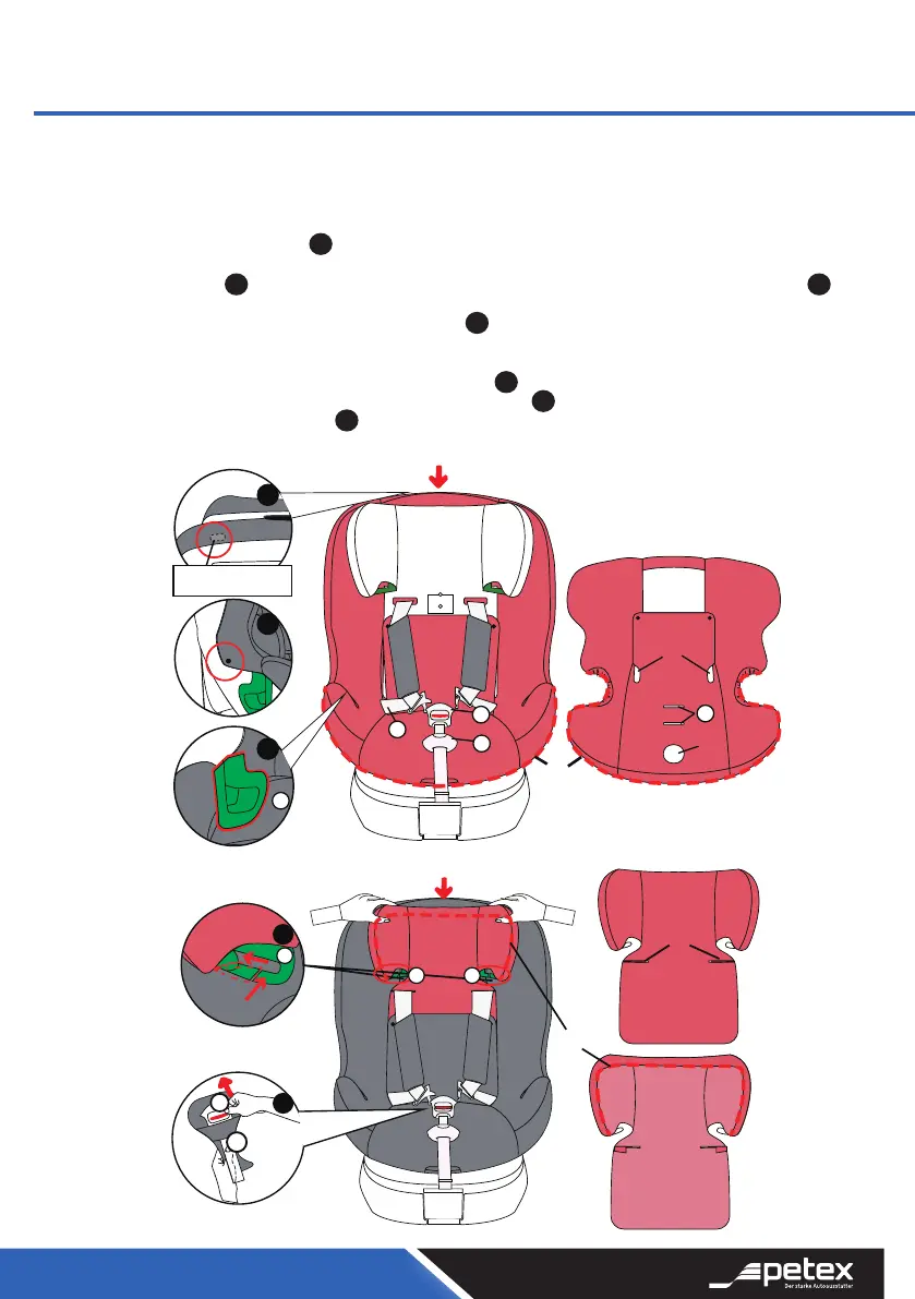 tergurte durch (Nr. 5), verbinden Sie dann die Klettverschlüsse mit dem Stobezug der Kopfstütze.