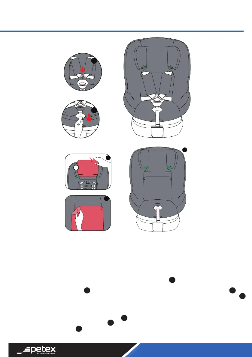dotted line, should be clamped into the seat connection gap. Pull the shoulder belts through (No 5), then connect