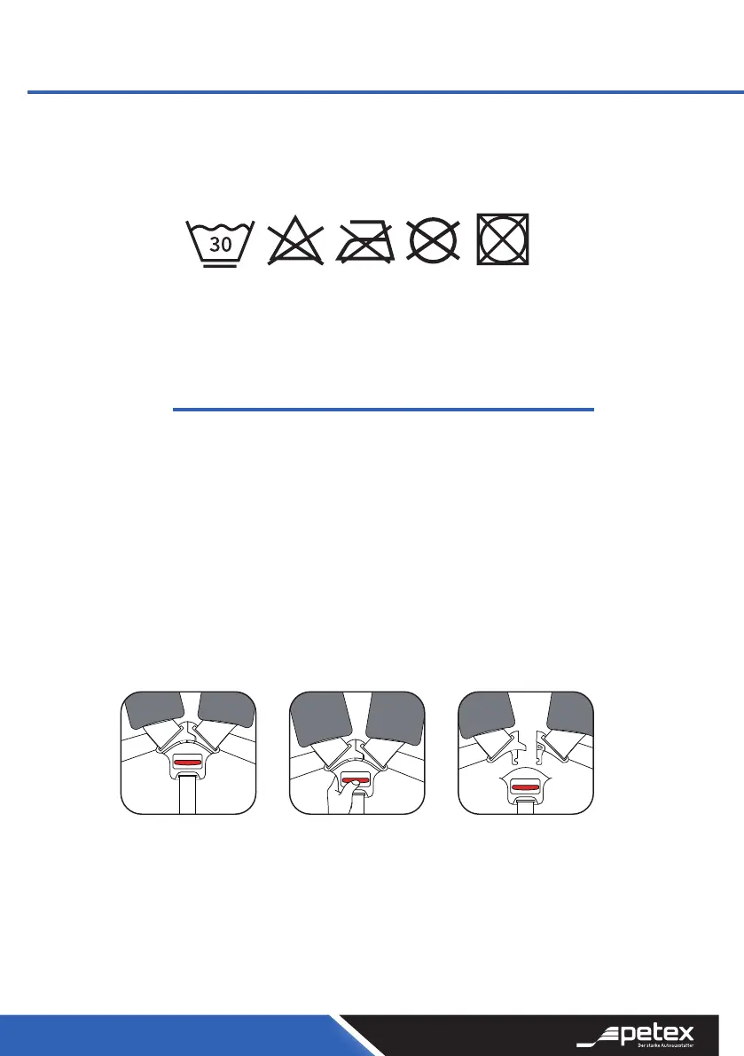 • Achten Sie darauf, dass keine Seife in das Gurtschloss oder die Einstellvorrichtungen gelangt.