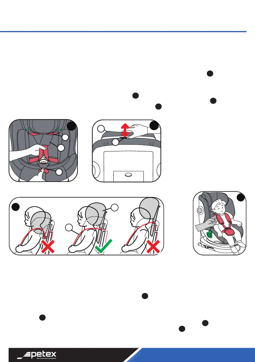 position. Adjust the height of the headrest (08) so that the shoulder straps are (32) a little higher than the child‘s
