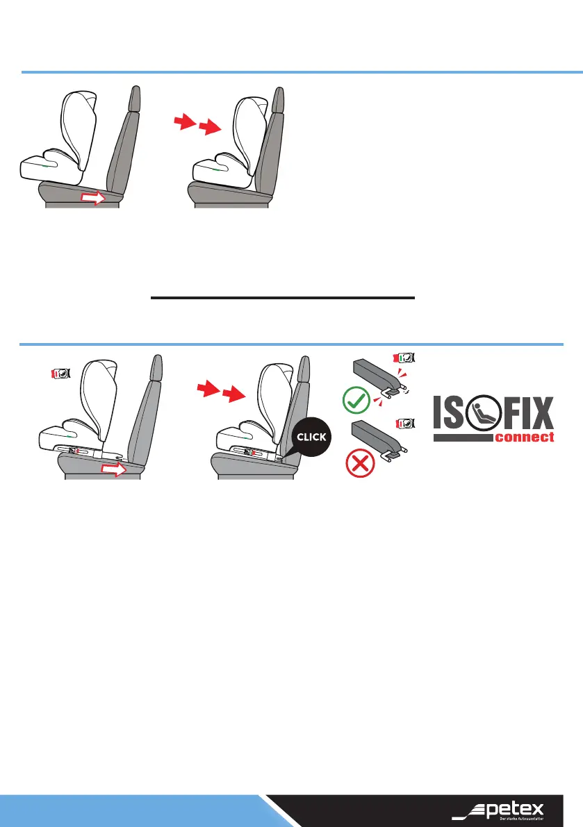 Push the child seat backwards as far as possible until the cars´ backrest rests against the child seat.