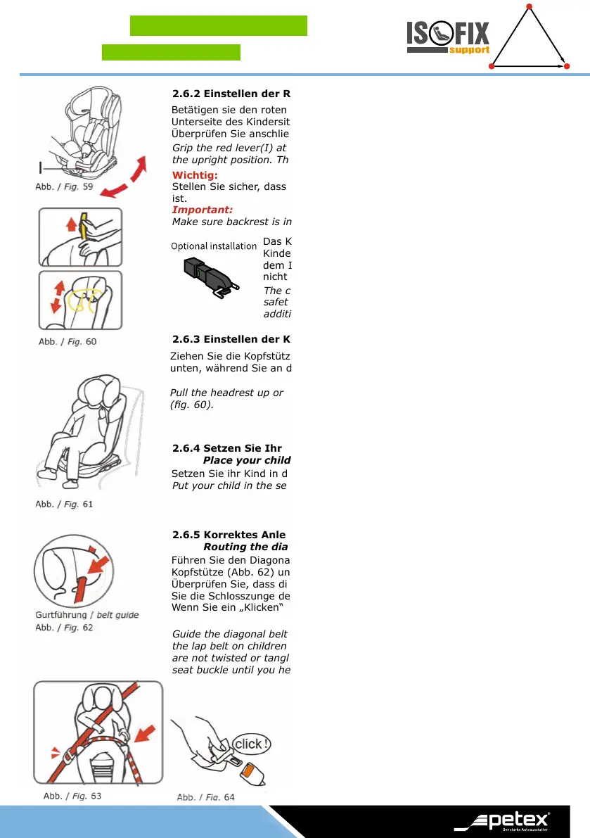 Kopfstütze (Abb. 62) und den Beckengurt über den Bauch des Kindes (Abb. 63).
