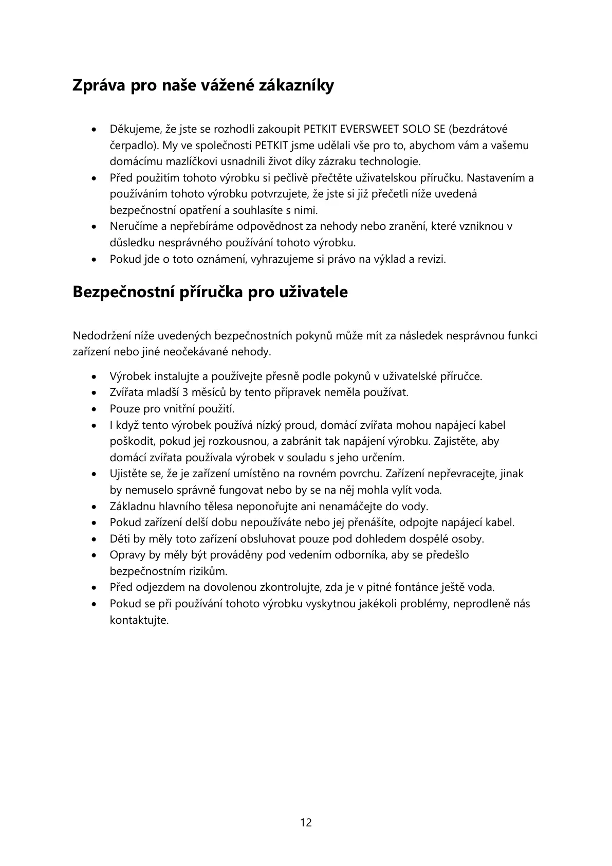 Děkujeme, že jste se rozhodli zakoupit PETKIT EVERSWEET SOLO SE (bezdrátové