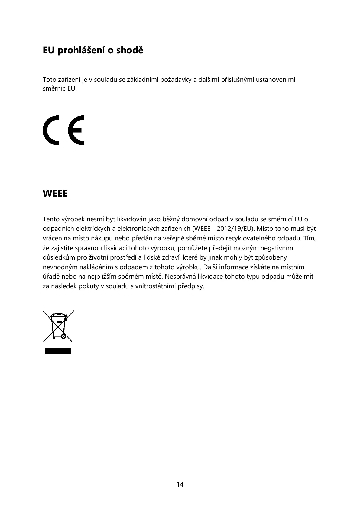 odpadních elektrických a elektronických zařízeních (WEEE - 2012/19/EU). Místo toho musí být