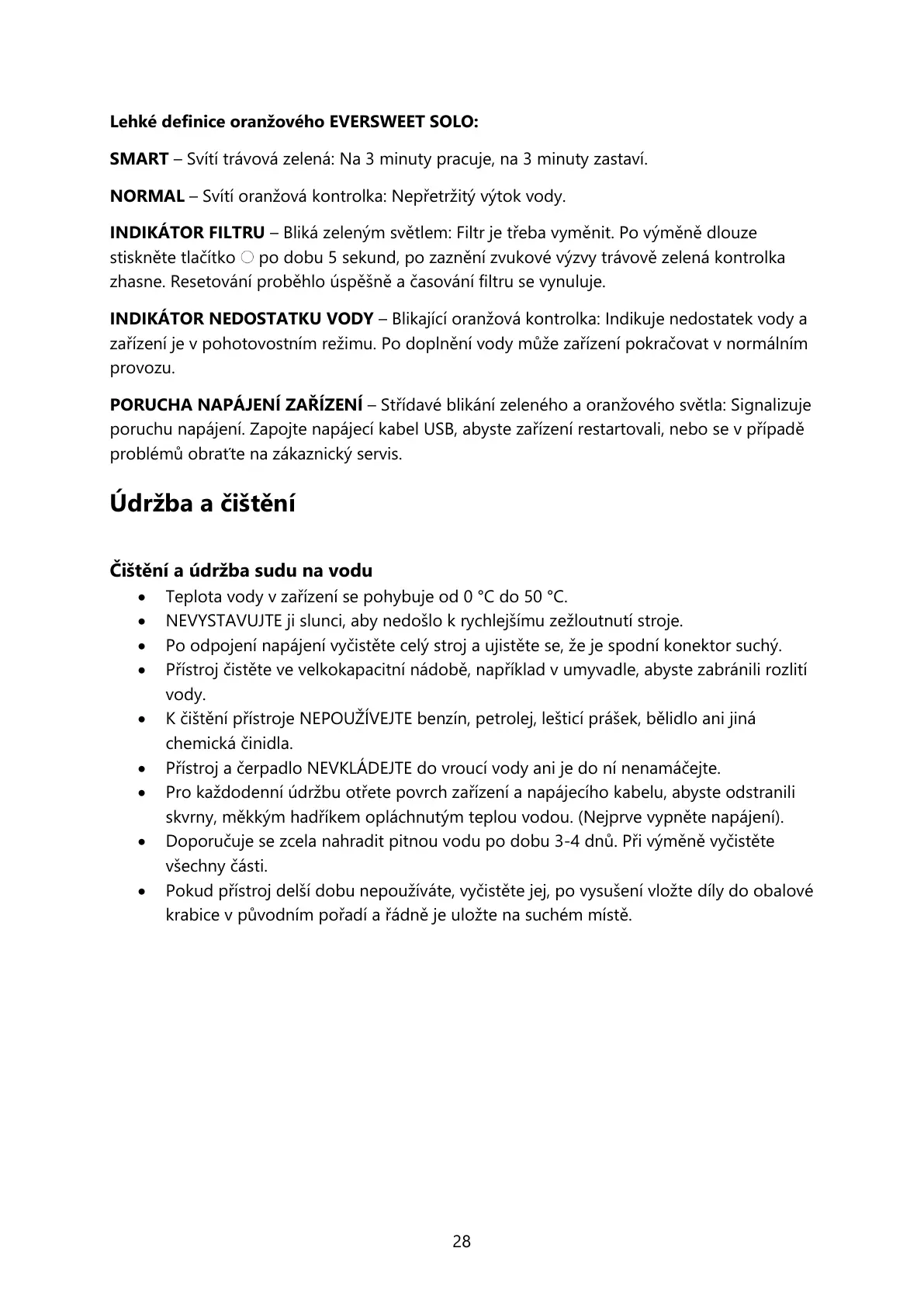 Doporučuje se zcela nahradit pitnou vodu po dobu 3-4 dnů. Při výměně vyčistěte