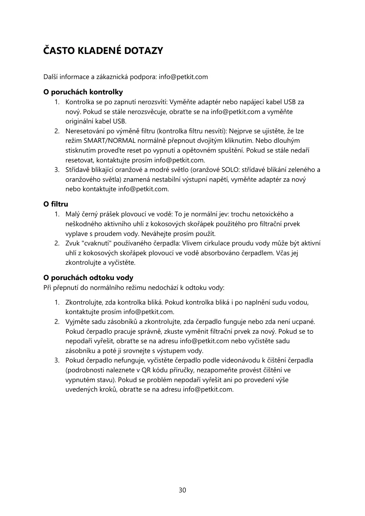 nepodaří vyřešit, obraťte se na adresu info@petkit.com nebo vyčistěte sadu