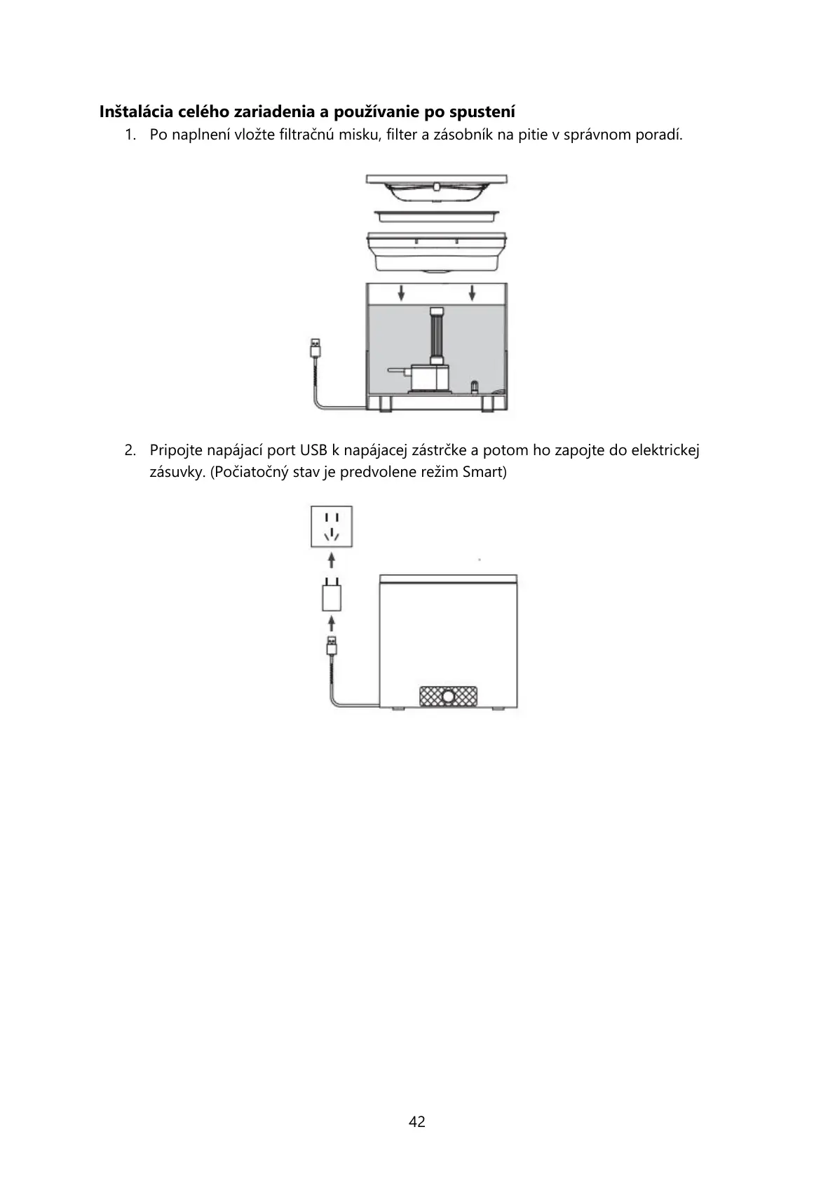 1. Po naplne vložte filtračmisku, filter a zásobník na pitie v správnom poradí.