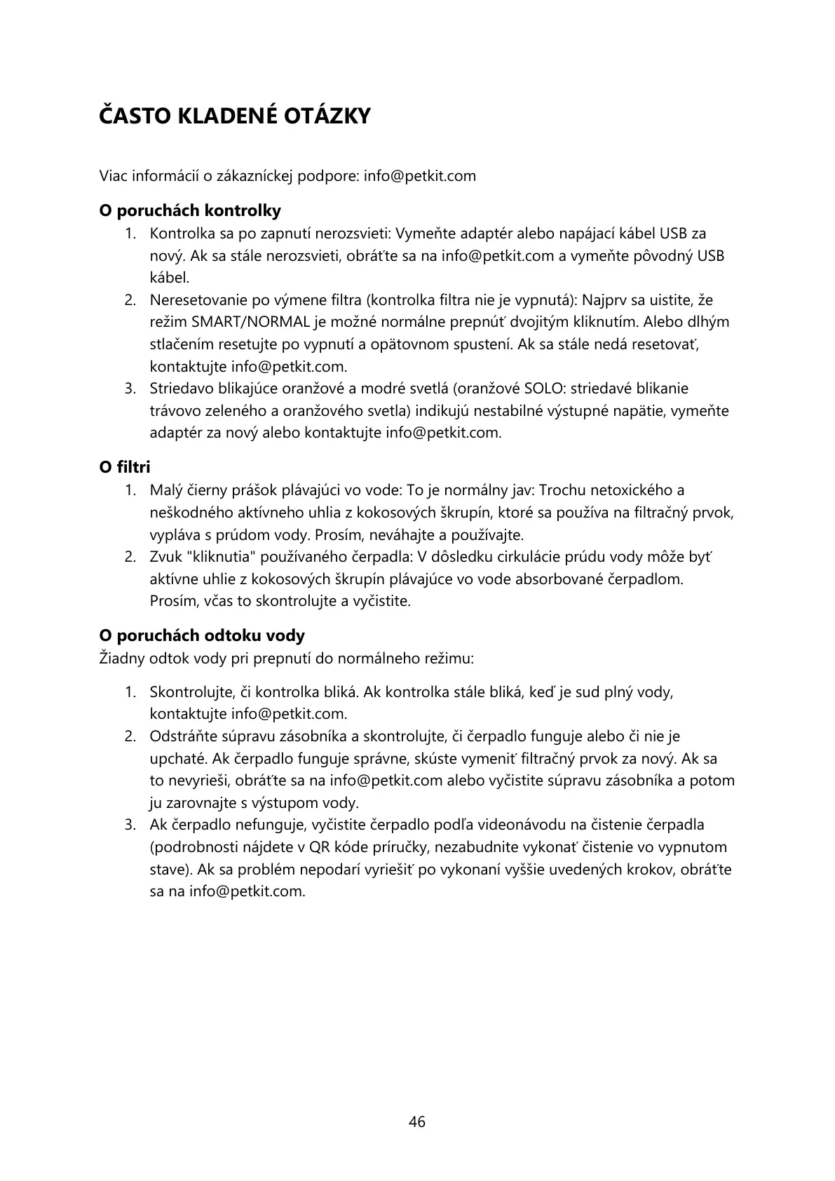 Viac informácií o zákazníckej podpore: info@petkit.com