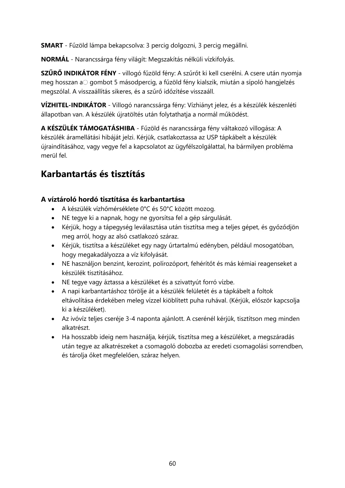 Ha hosszabb ideig nem használja, kérjük, tisztítsa meg a készüléket, a megszáradás