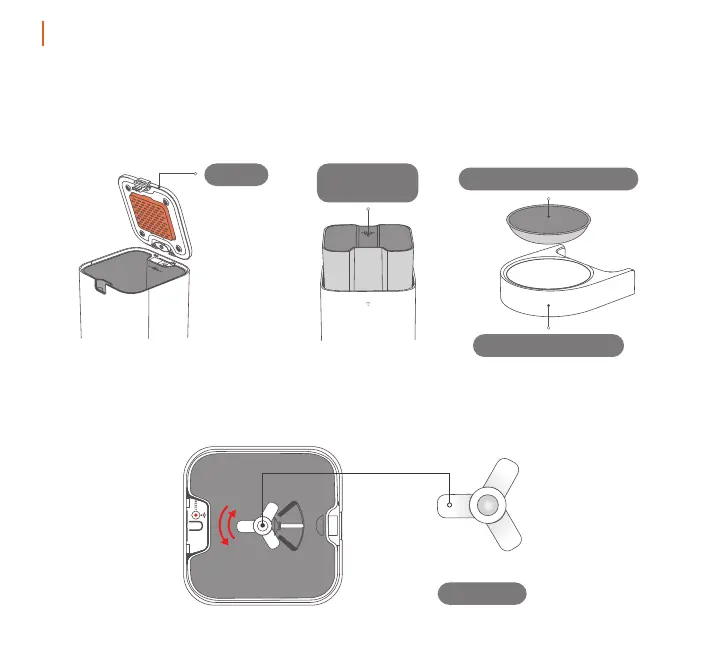 2. Place the food bowl on the bottom section