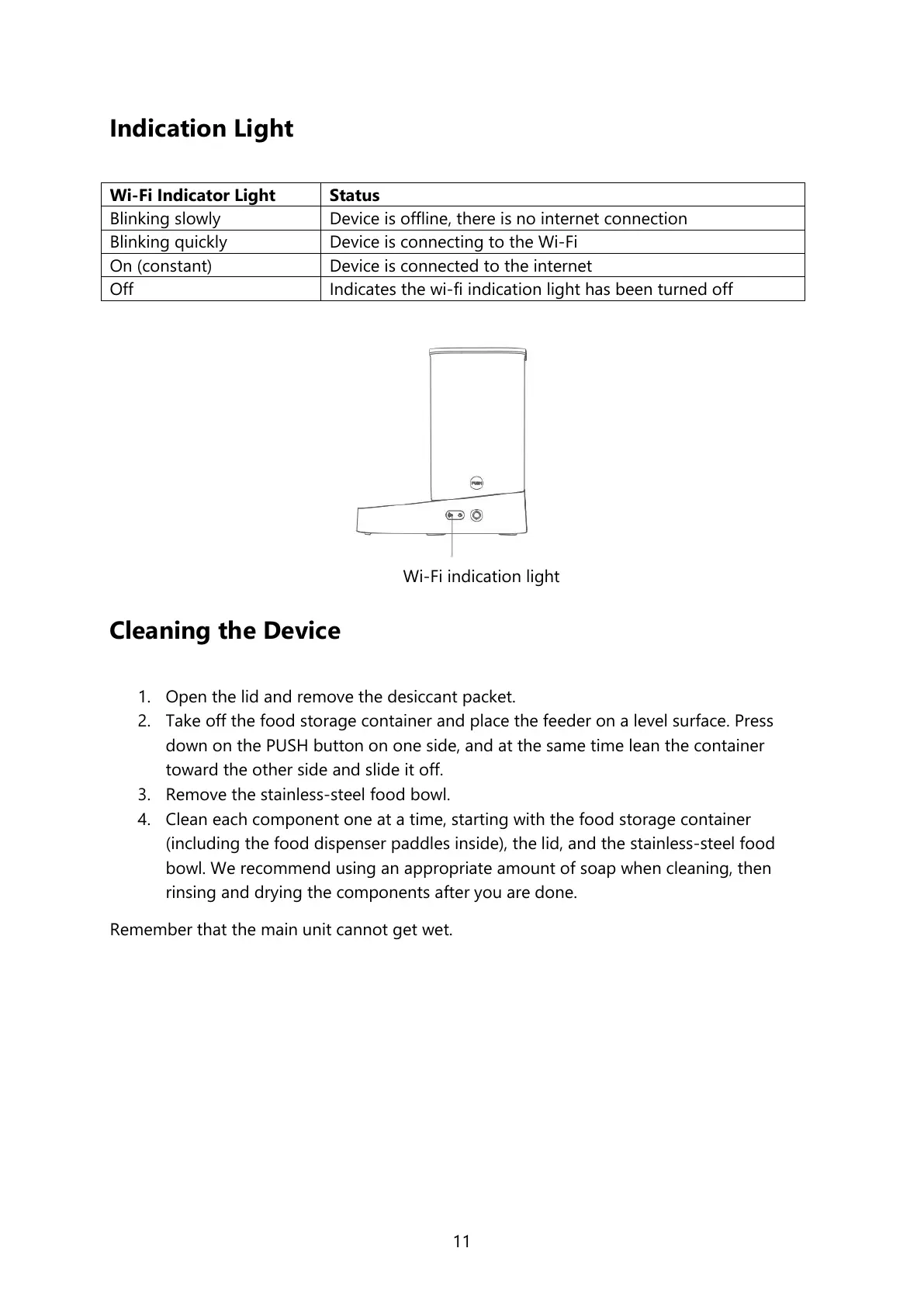 Remember that the main unit cannot get wet.
