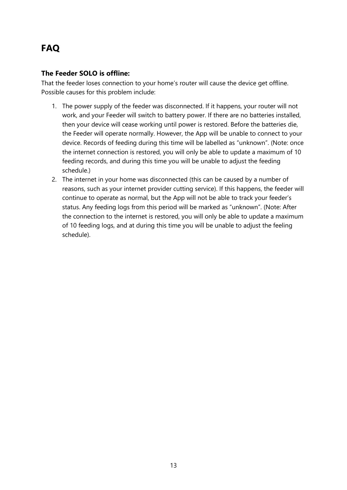 the Feeder will operate normally. However, the App will be unable to connect to your