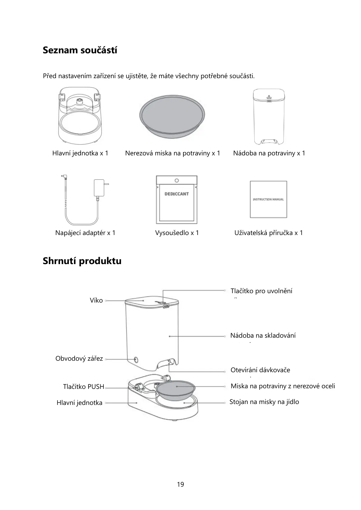 Před nastavením zařízení se ujistěte, že máte všechny potřebsoučásti.