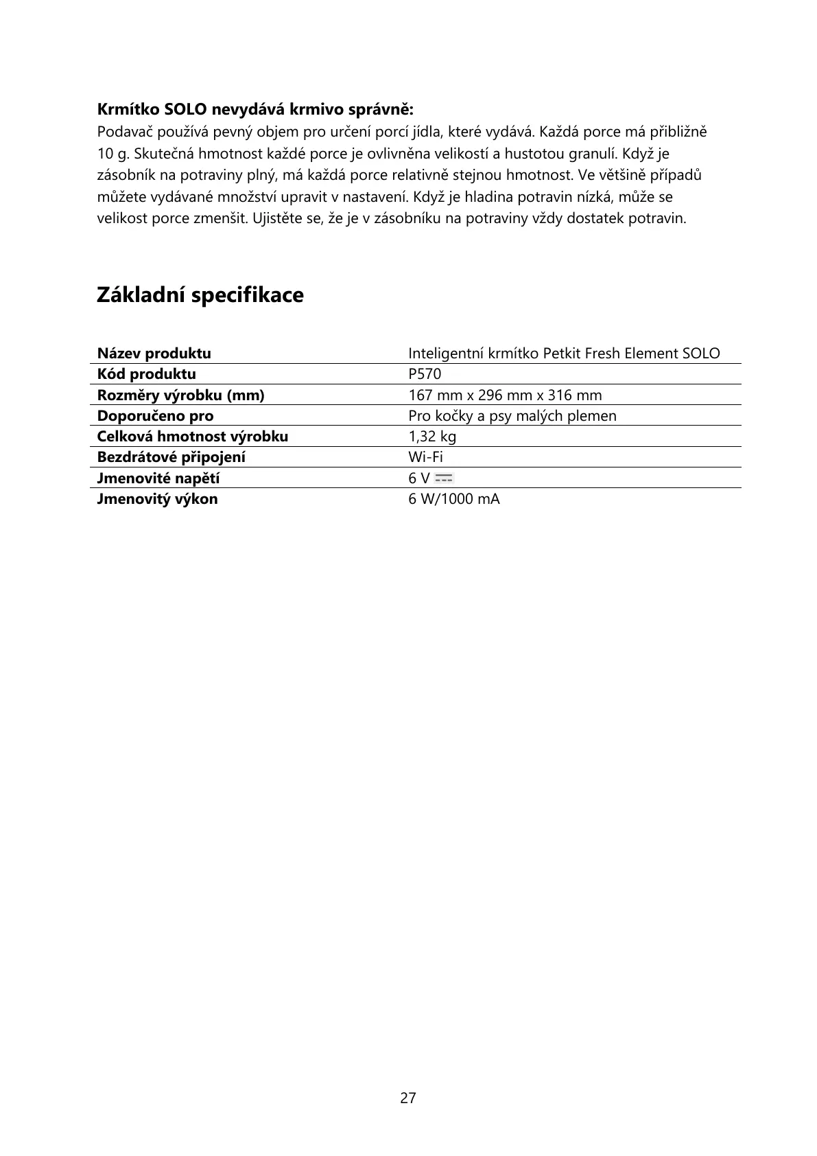 velikost porce zmenšit. Ujistěte se, že je v zásobníku na potraviny vždy dostatek potravin.