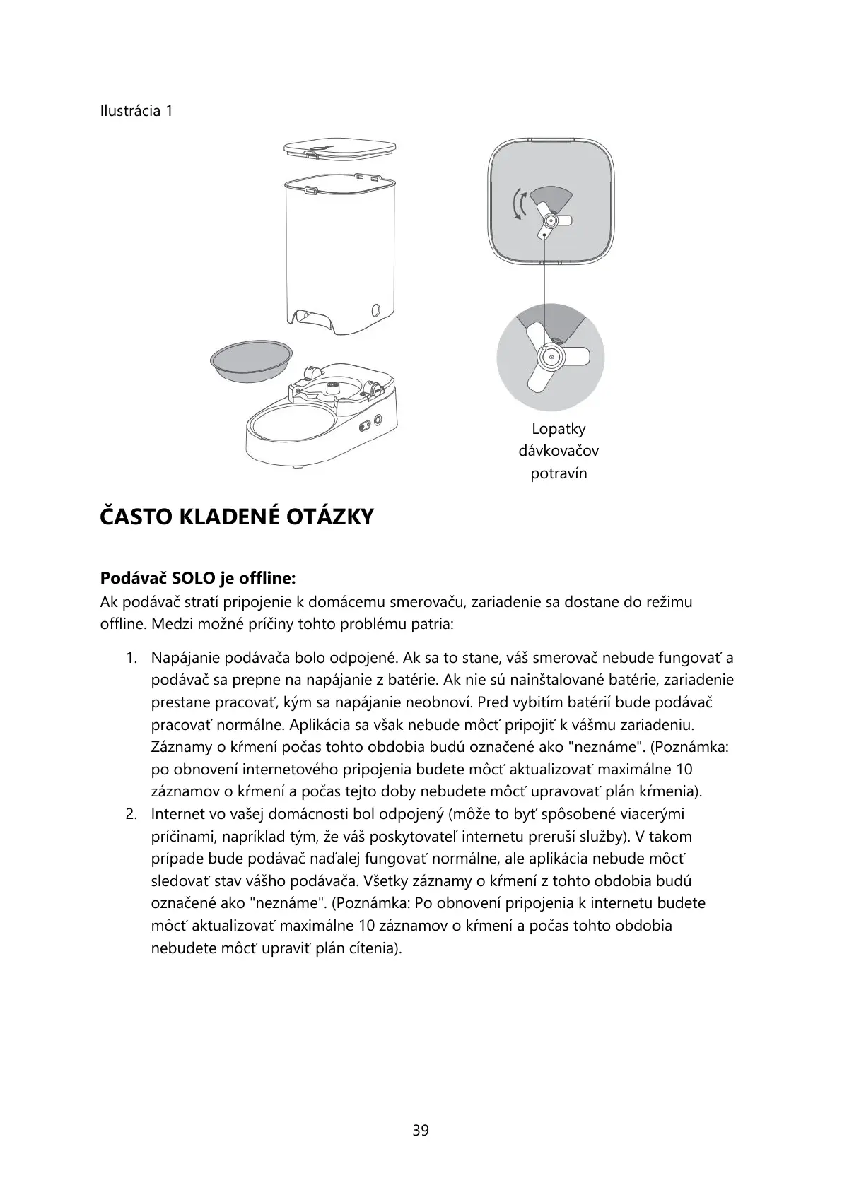 prípade bude podávač naďalej fungovať normálne, ale aplikácia nebude môcť