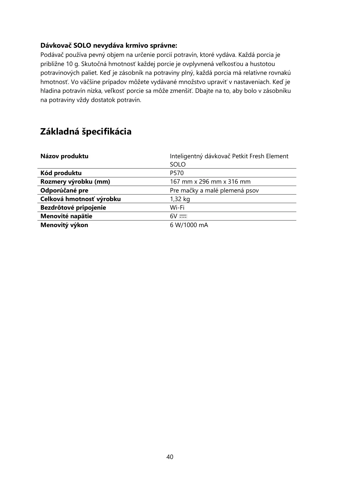 potravinových paliet. Keď je zásobník na potraviny plný, každá porcia má relatívne rovnakú