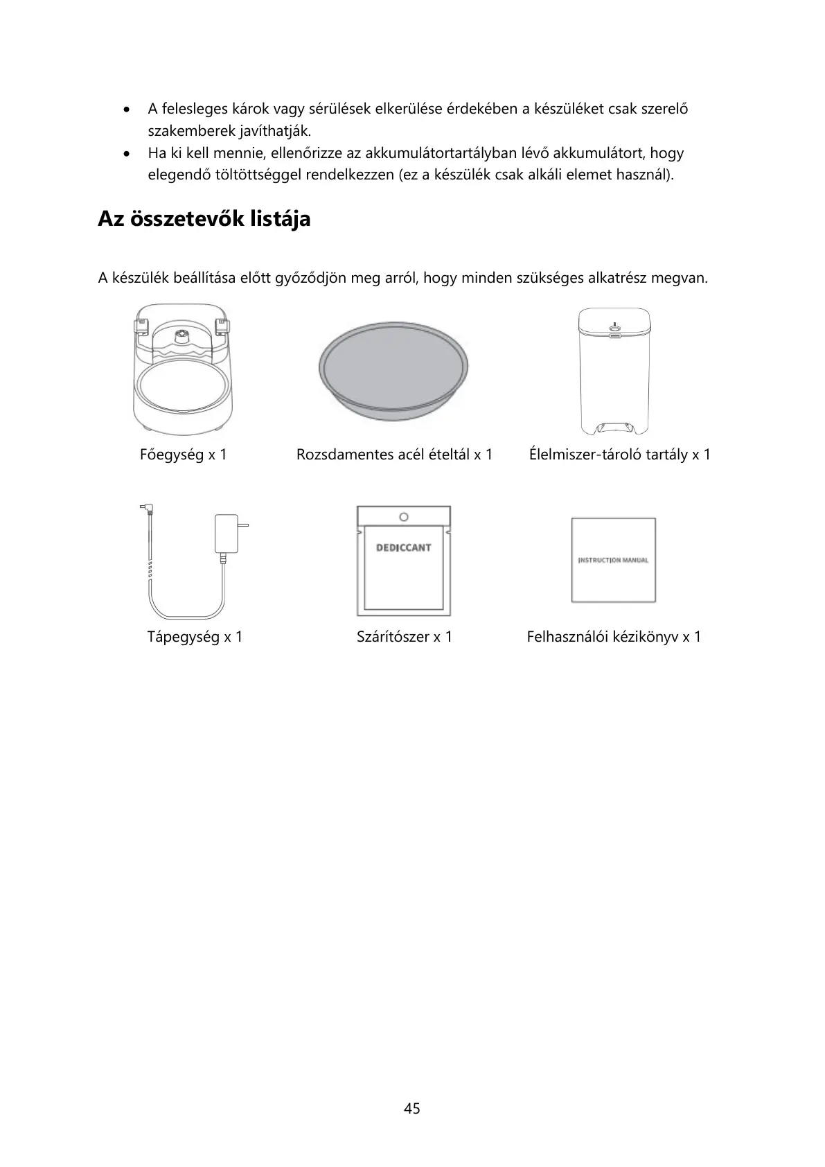 A készülék beállítása előtt győződjön meg arról, hogy minden szükséges alkatrész megvan.