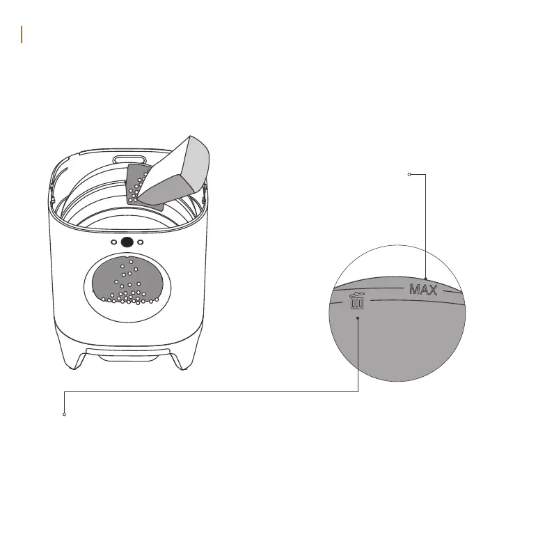 removing. Take careful note of the litter level shown on the “Empty Litter Line” located by the trash symbol on the inside of