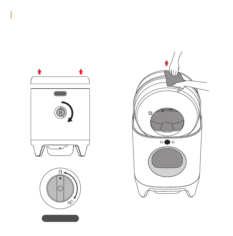 removing. Take careful note of the litter level shown on the “Empty Litter Line” located by the trash symbol on the inside of