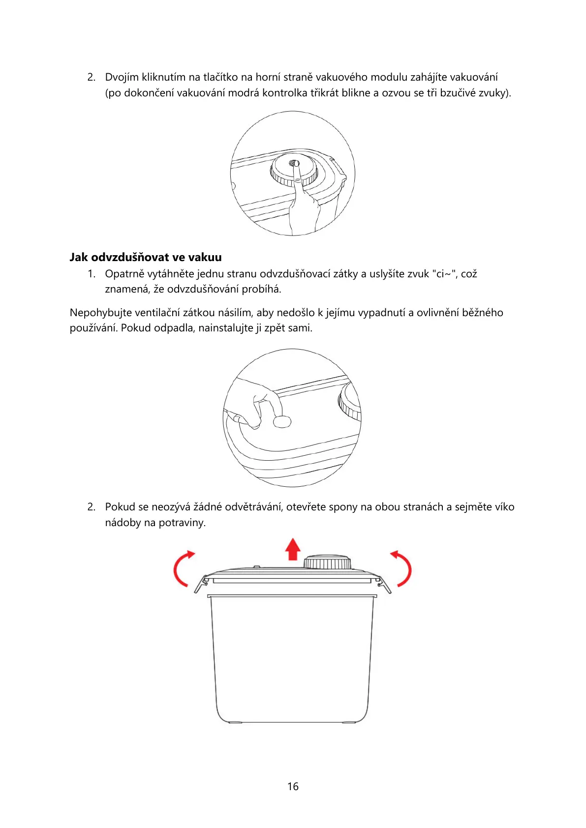 (po dokončení vakuování modrá kontrolka třikrát blikne a ozvou se tři bzučivé zvuky).