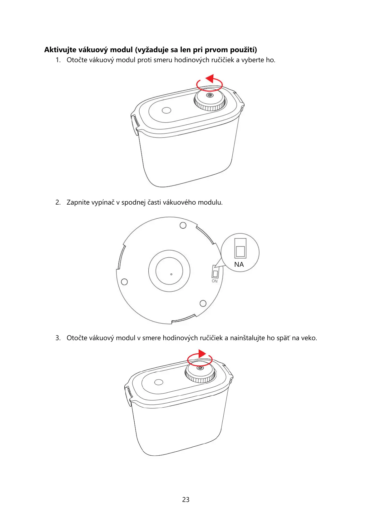 3. Otočte vákuový modul v smere hodinových ručiek a nainštalujte ho späť na veko.